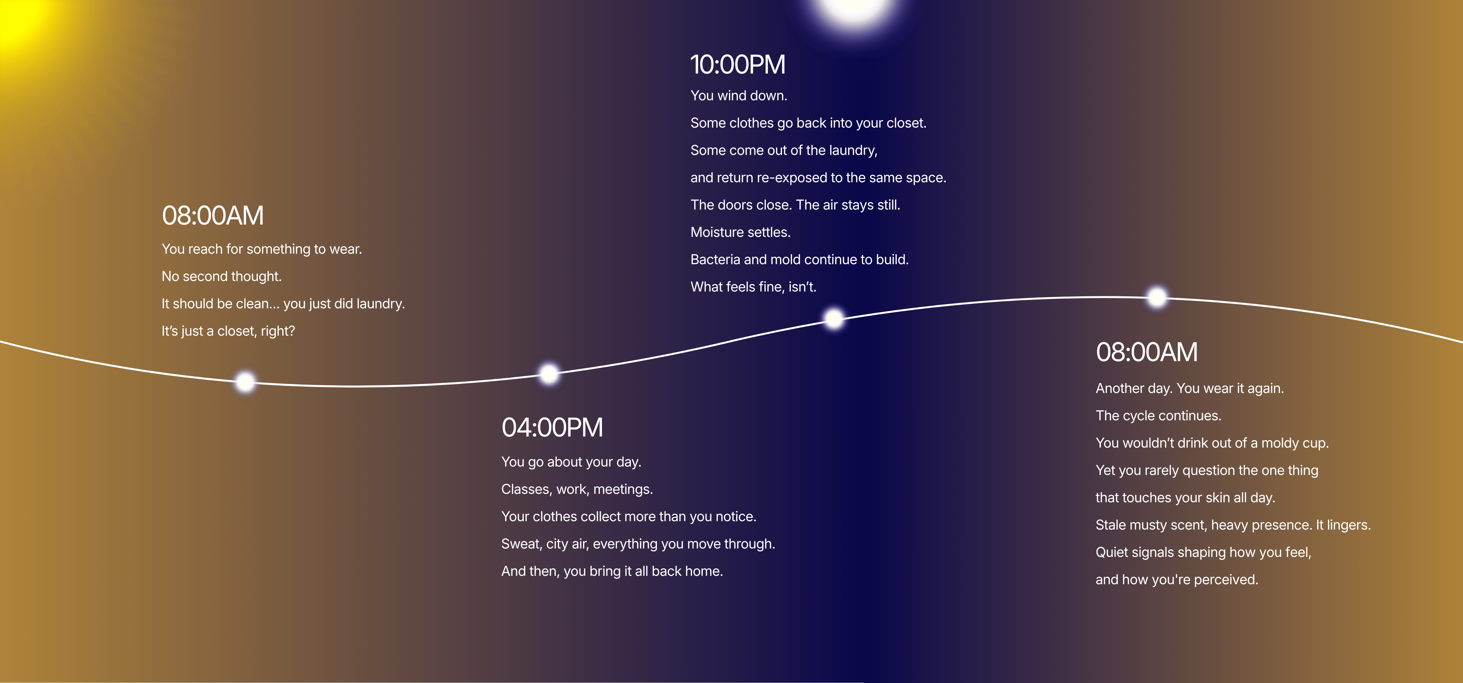 Fragrance fades. Sweat, skin oils, city air, even yesterday's dinner clings to every fabric. Constant washing only wears your fabric down, and does nothing for the root cause.
